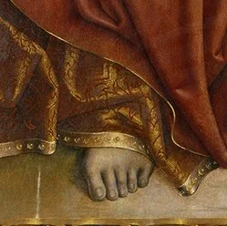 St. Ursula meanwhile is face down and rump up, preoccupied with praise. The imp wriggles free of her embrace. He rolls out from under and gasps, “Saint suck us a ruckus.”